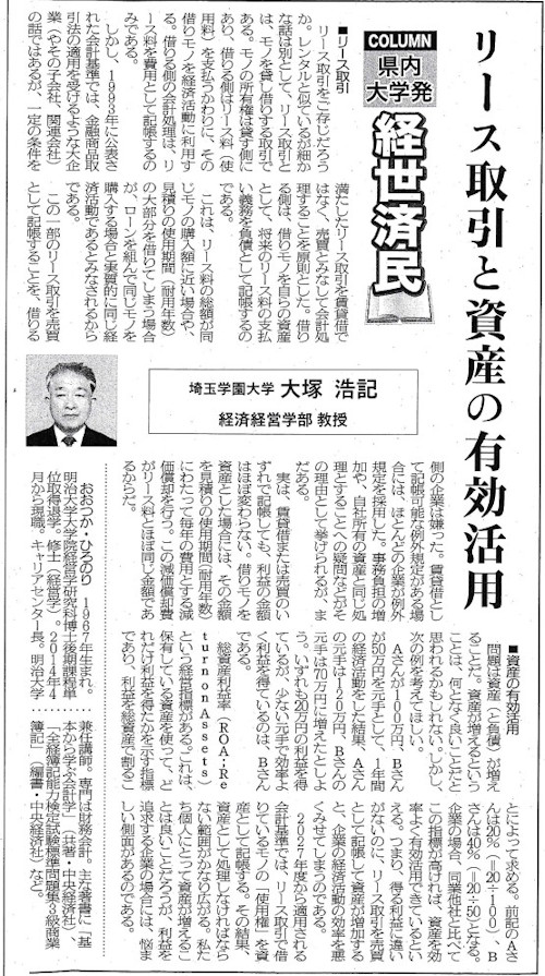 2025年10月17日(金)大塚浩記教授の論説が埼玉新聞に掲載されました。