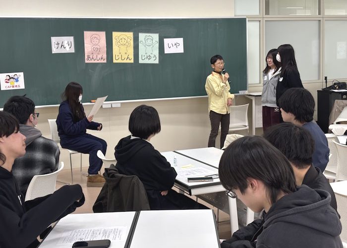 子ども発達学科 千﨑ゼミがCAP(子どもへの暴力防止)おとなワークショップを開催しました。CAP東埼玉の方々にお越しいただき、3年生有志が参加して、子どもが暴力から自分のこころとからだを守るために周りの大人は何ができるのかについて、ロールプレイやディスカッションを通して考えました。