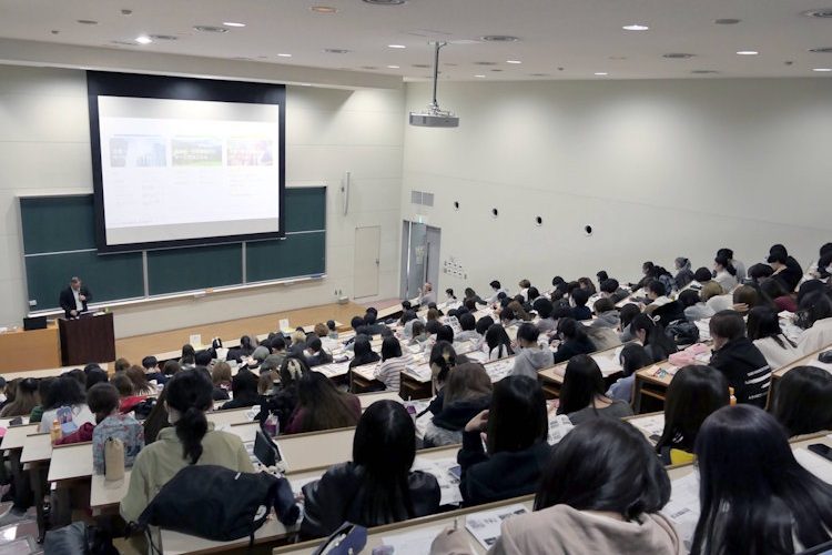 講義の冒頭では、旅の歴史を振り返りながら、旅が社会にもたらす経済効果についてご説明いただき、その後、同社が取り組んできた旅行ビジネスの概要や同社の特色について解説がありました。また、学生がビジネスの社会に出た際のことを想定し、仕事との向き合い方や、取り組み方等社会人としての基本姿勢についてもご講義をいただきました。
