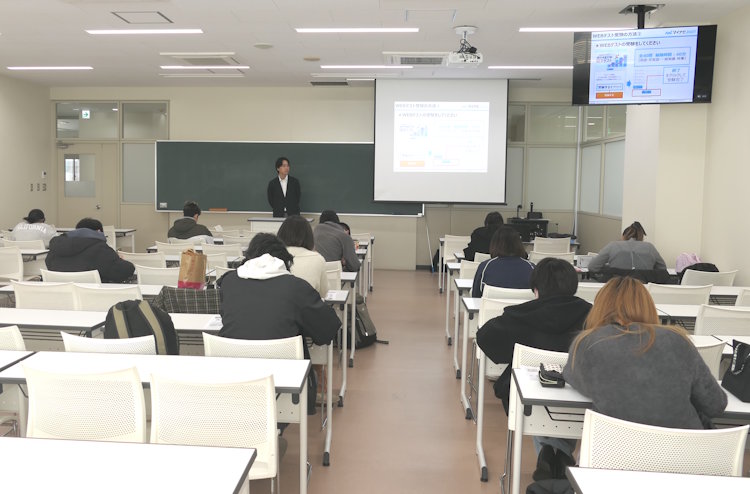 12月5日(金)に、1年生から3年生を対象に、WEBによる就職筆記模擬試験を実施しました。本受験会では、言語・非言語・一般常識・時事問題の4科目、合計40問をWEB上で受験しました。